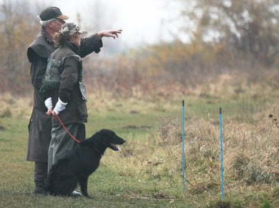 Tijdens de Apporteer Trofee zijn Ton en ik naar een mooi water gereden en heb ik Fender tijdens de schoten van de jachtgeweren "over gestuurd" en een lijn laten lopen. Weer een ervaring rijker. Toen de proeven helemaal klaar waren, mocht ze de auto uit. Op gegeven moment was ik haar kwijt, maar na even zoeken zag ik haar bij het begin van de ganzensleep, ze pakte de sleep op en liep deze helemaal uit. Gek ding is het toch!