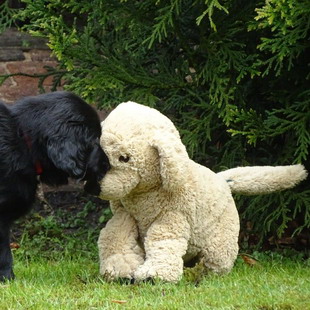 Jorja heeft drie favoriete speeltjes, waar ze bijna de hele dag mee rond loopt. Wanneer Pip of Harley de vergissing maken één van deze speeltjes op te pakken, dan wordt dit onmiddellijk door George in beslag genomen. Want volgens Jorja is zij de enige die speeltjes mag vasthouden en loopt hiermee met swingende billetjes door het huis. Bel je bij ons aan, dan kun je er zeker van zijn dat Jorja je één van haar speeltjes showt. Ze maakt hierbij luid knorrende geluidjes, want ja zo is onze George nou eenmaal. Buiten hebben Pip en Harley ook niet veel te vertellen. Niet alleen wat speeltjes betreft, volgens mij ........ ze hebben sowieso niets meer te vertellen!!! Mochten ze tijdens de wandeling een bal vinden, dan begrijpen jullie dat deze onmiddellijk moet worden ingeleverd. Hieronder een overzicht van Jorja's top drie: